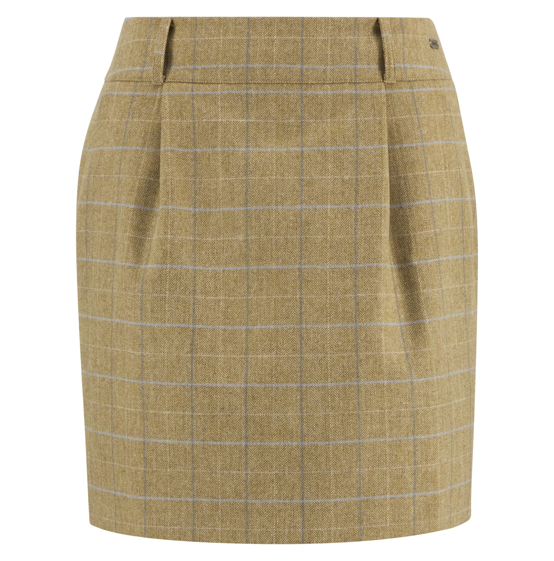 Check pencil shape skirt with wide waistband, pleated front and side pockets. Barbour ID badge at front waistband and zip to centre back.