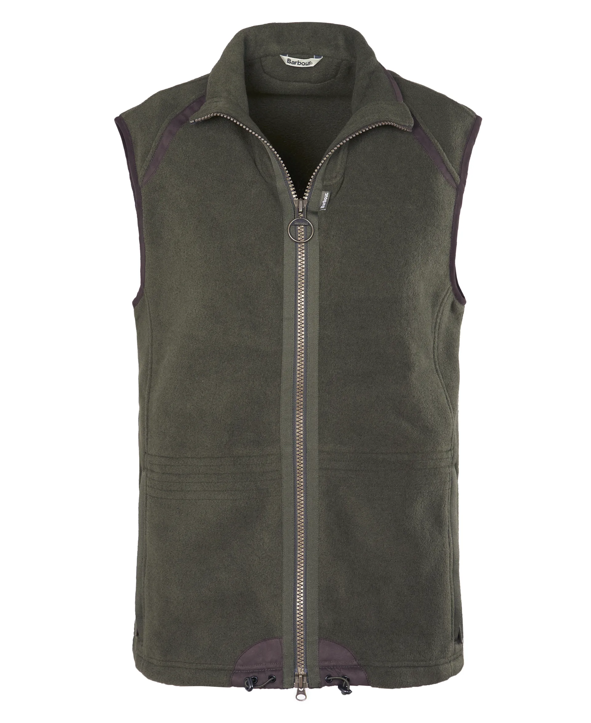 A modern and stylish country fleece gilet featuring exposed front zip and adjustor cord to hem.