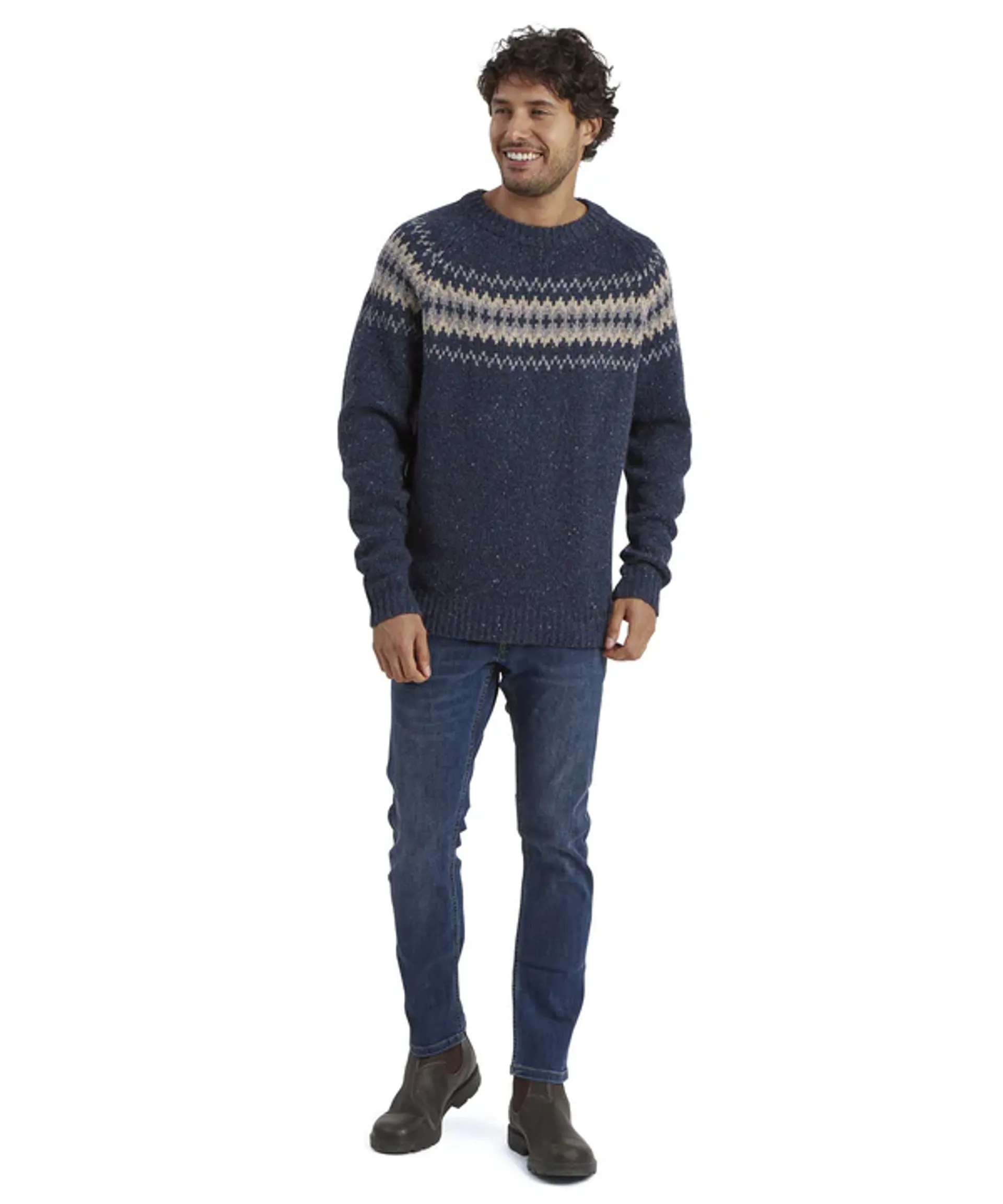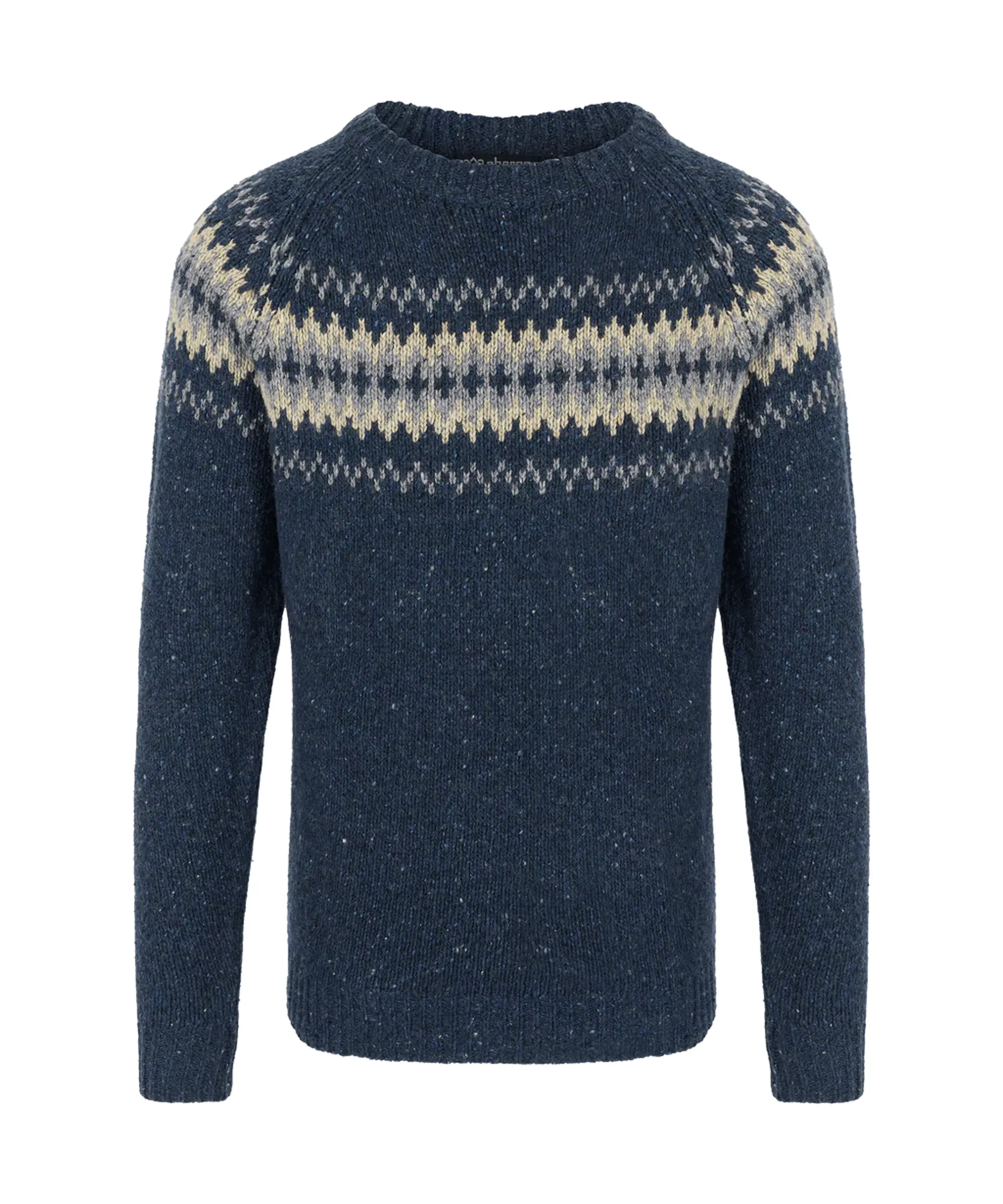 The shape of this jumper is inspired by the jumper worn on the first Everest expedition, using superfine merino and alpaca wool for the ultimate combination of soft comfort and technical moisture management. Merino wool is warm without added weight, and is naturally antimicrobial. This crew features a Nepalese-inspired design on the front and has ribbed collar, cuffs and hem.