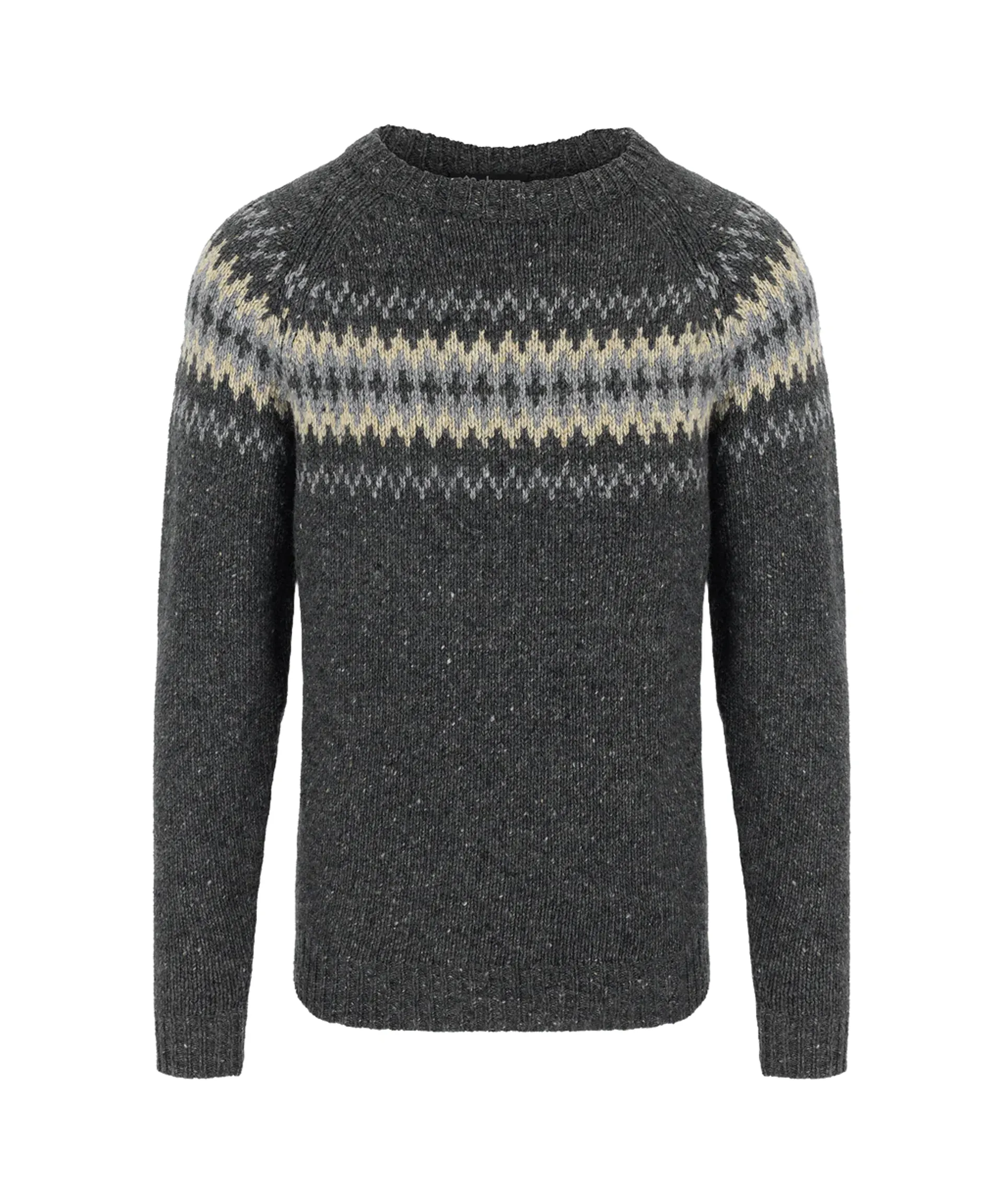 The shape of this jumper is inspired by the jumper worn on the first Everest expedition, using superfine merino and alpaca wool for the ultimate combination of soft comfort and technical moisture management. Merino wool is warm without added weight, and is naturally antimicrobial. This crew features a Nepalese-inspired design on the front and has ribbed collar, cuffs and hem.
